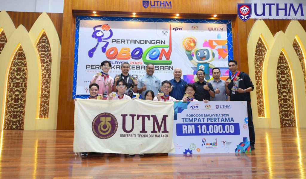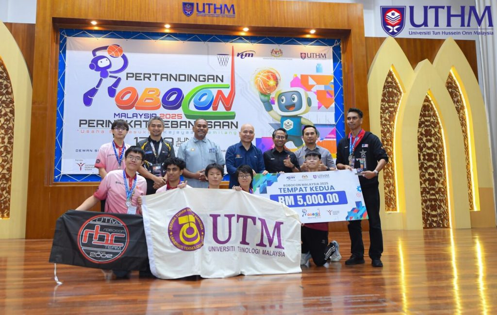 Universiti Tun Hussein Onn Malaysia (UTHM) has won the Best Playbot Design Award during the ROBOCON 2025 Competition, National Level happening from 17-19 June 2025 at Sultan Ibrahim Hall, UTHM. The theme “Robot Basketball” and the slogan Team Effort, Ultimate Success has proven to amp up the team spirit to deliver the elements of strategy and coordination of the organic robot intelligence.