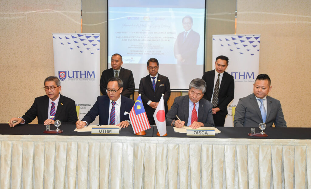 Universiti Tun Hussein Onn Malaysia (UTHM) with The Organisation for Industrial, Spiritual and Cultural Advancement (OISCA), Japan have signed a Memorandum of Understanding (MoU) recently to collaborate on multi-area including academic, research, communal and environmental development as well as staff and students’ mobility programme. For the record, OISCA is an organisation that promotes international collaboration in capacity building, rural development, environmental restoration as well as spiritual and cultural advancement.
