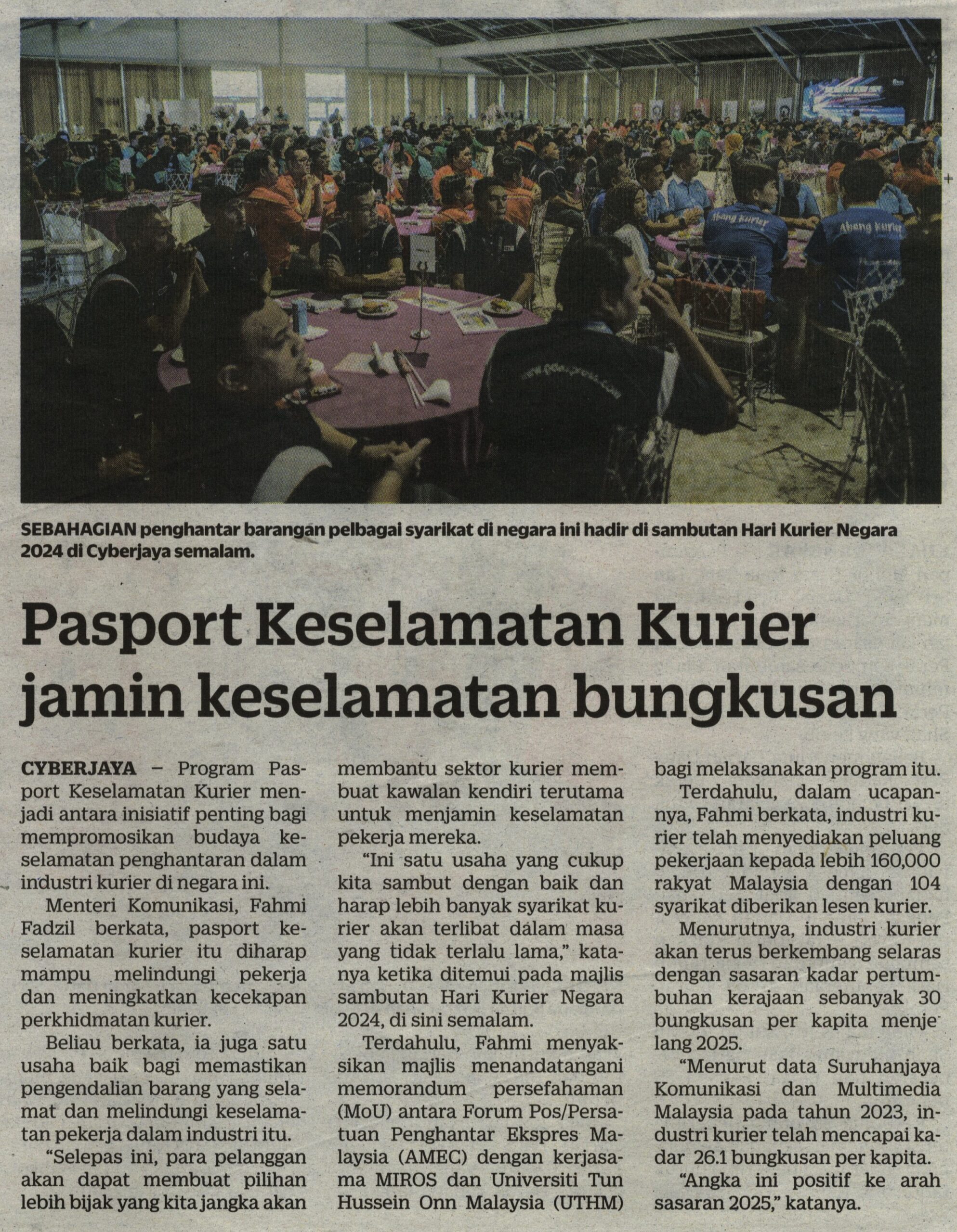 KOSMO 10 NOVEMBER 2024 Pasport Keselamatan Kurier jamin keselamatan bungkusan