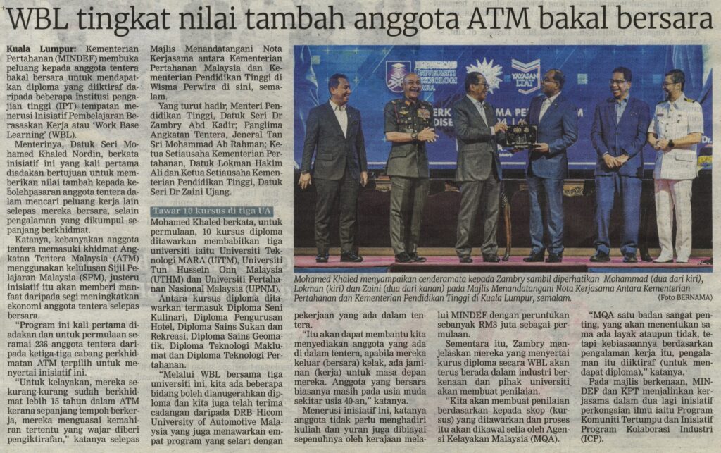 8. Bernama (bernama.com): 236 Anggota ATM Bakal Terima Diploma Melalui Program WBL