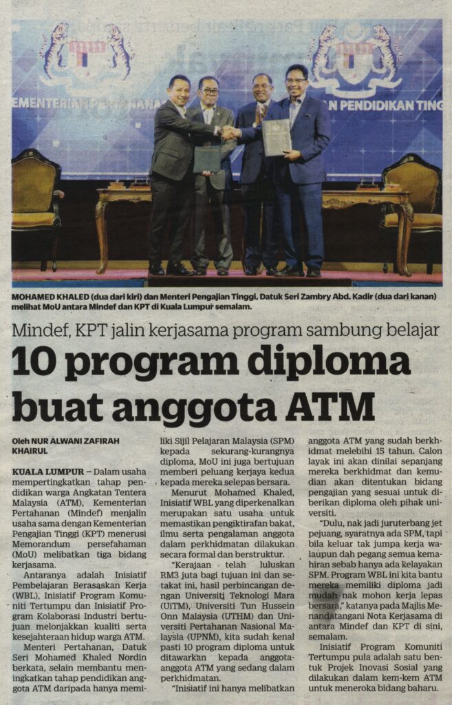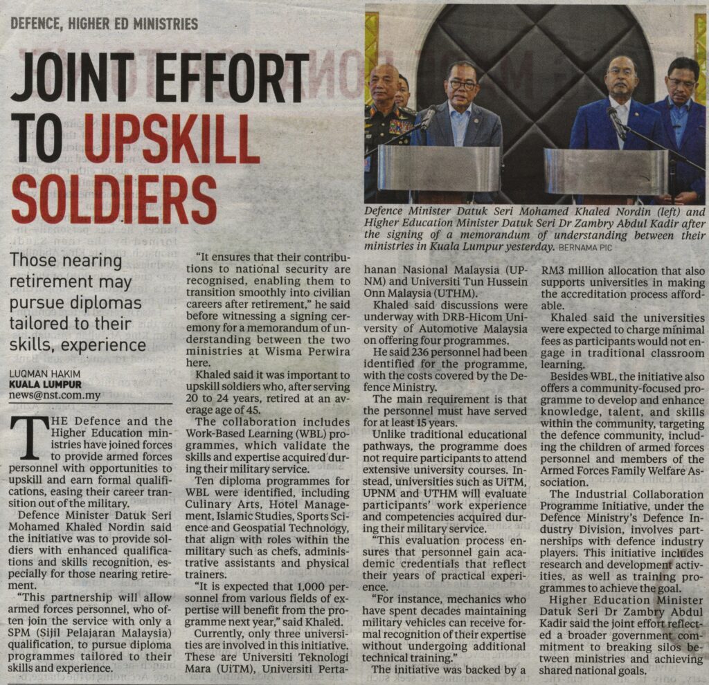 13. New Straits Times (page:7): DEFENCE, HIGHER ED MINISTRIES JOINT EFFORT TO UPSKILL SOLDIERS