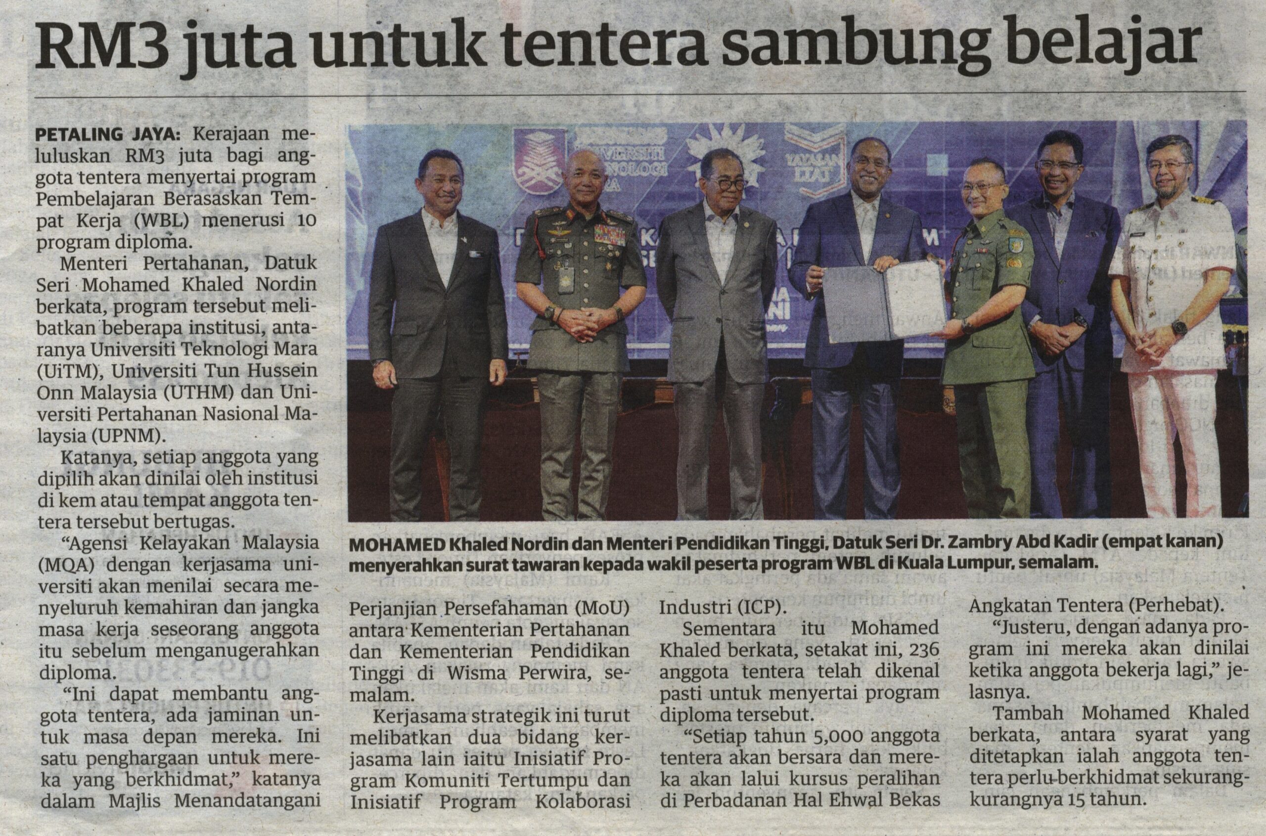 UTUSAN MALAYSIA 3 DISEMBER 2024 RM3 juta untuk tentera sambung belajar