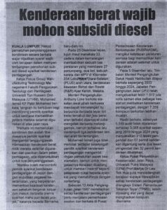 UTUSAN SARAWAK 30 DISEMBER 2024 Kenderaan berat wajib mohon subsidi diesel