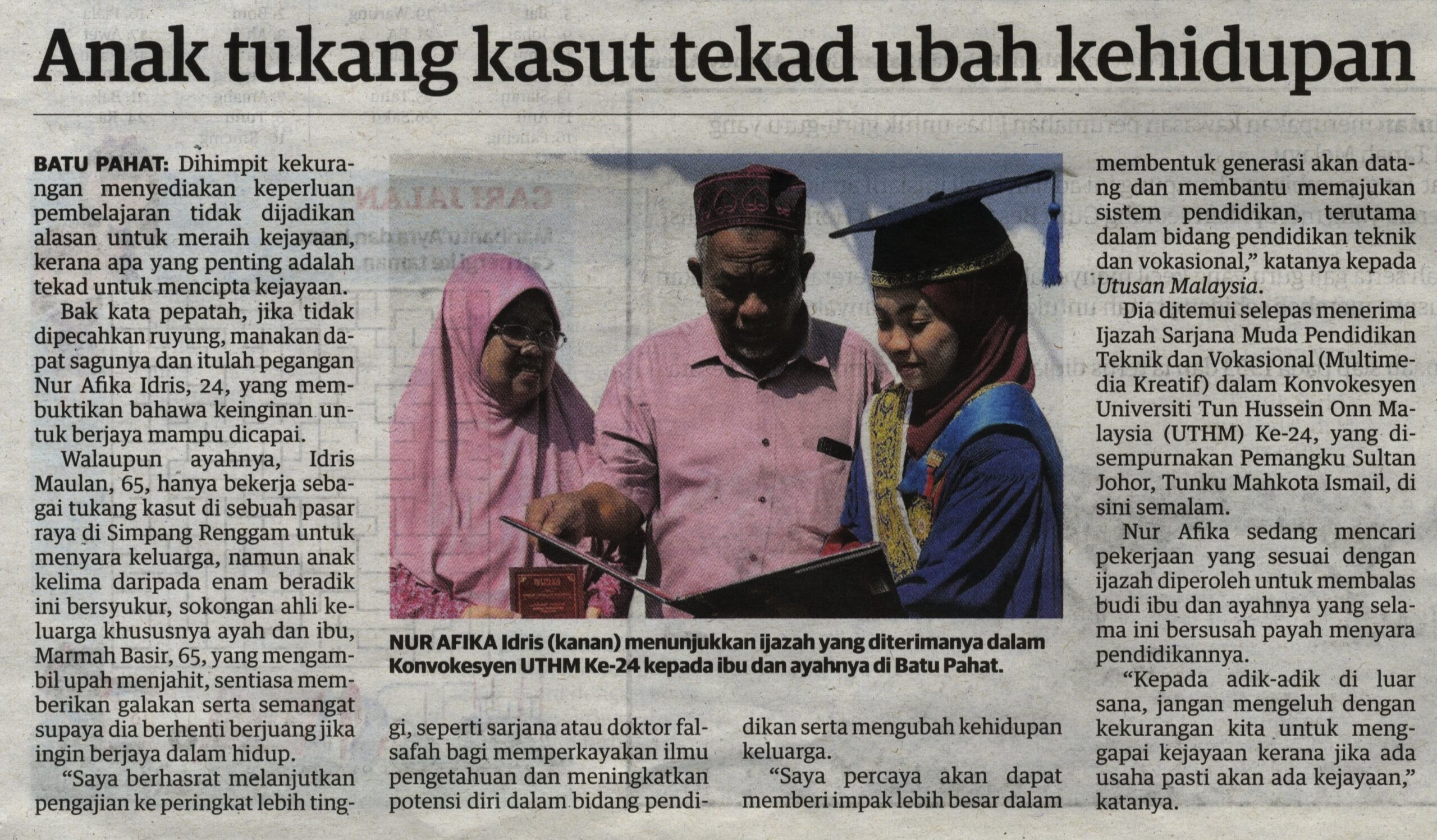 UTUSAN MALAYSIA 9 DISEMBER 2024 Anak tukang kasut tekad ubah kehidupan