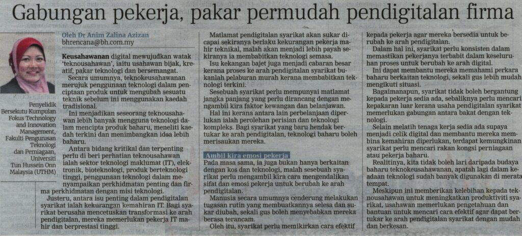 1. Berita Harian (muka surat: 11), 22 Januari 2025: Gabungan pekerja, pakar permudah pendigitalan firma