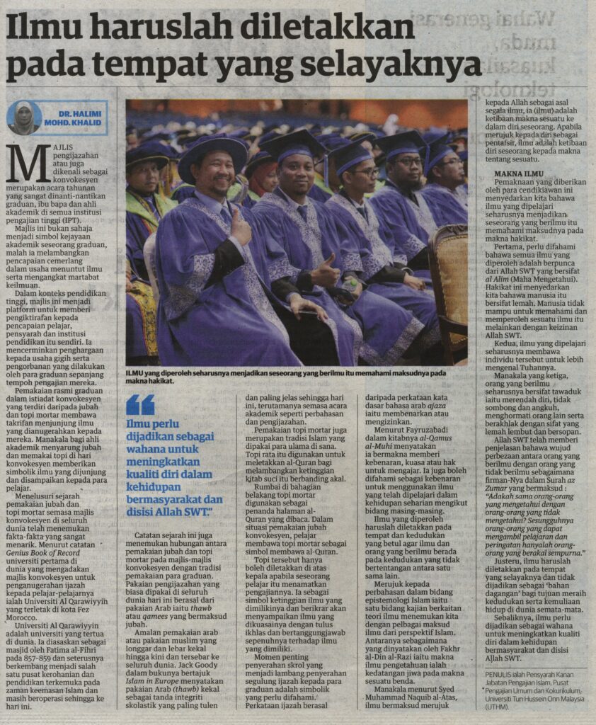 1. Utusan Malaysia (muka surat: 17), 7 Januari 2025: Ilmu haruslah diletakkan pada tempat yang selayaknya