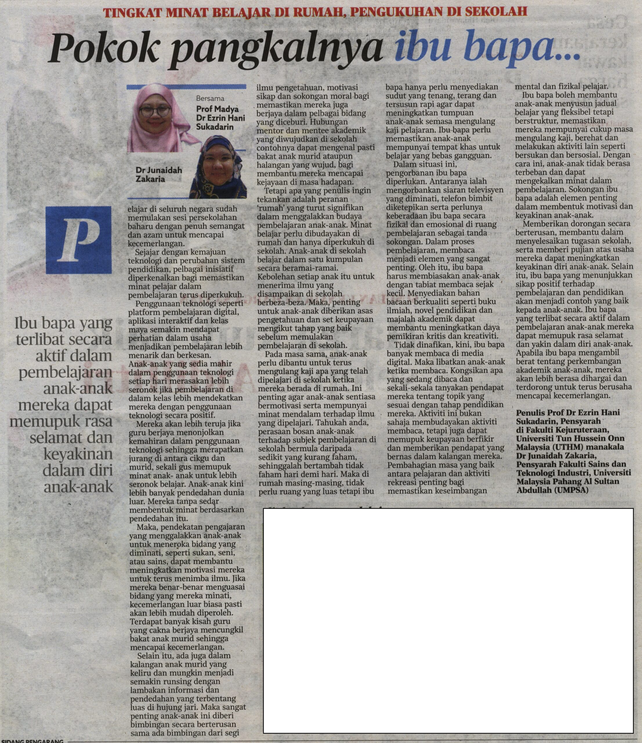 1. Harian Metro (muka surat: 14), 25 Februari 2025: Pokok pangkalnya ibu bapa