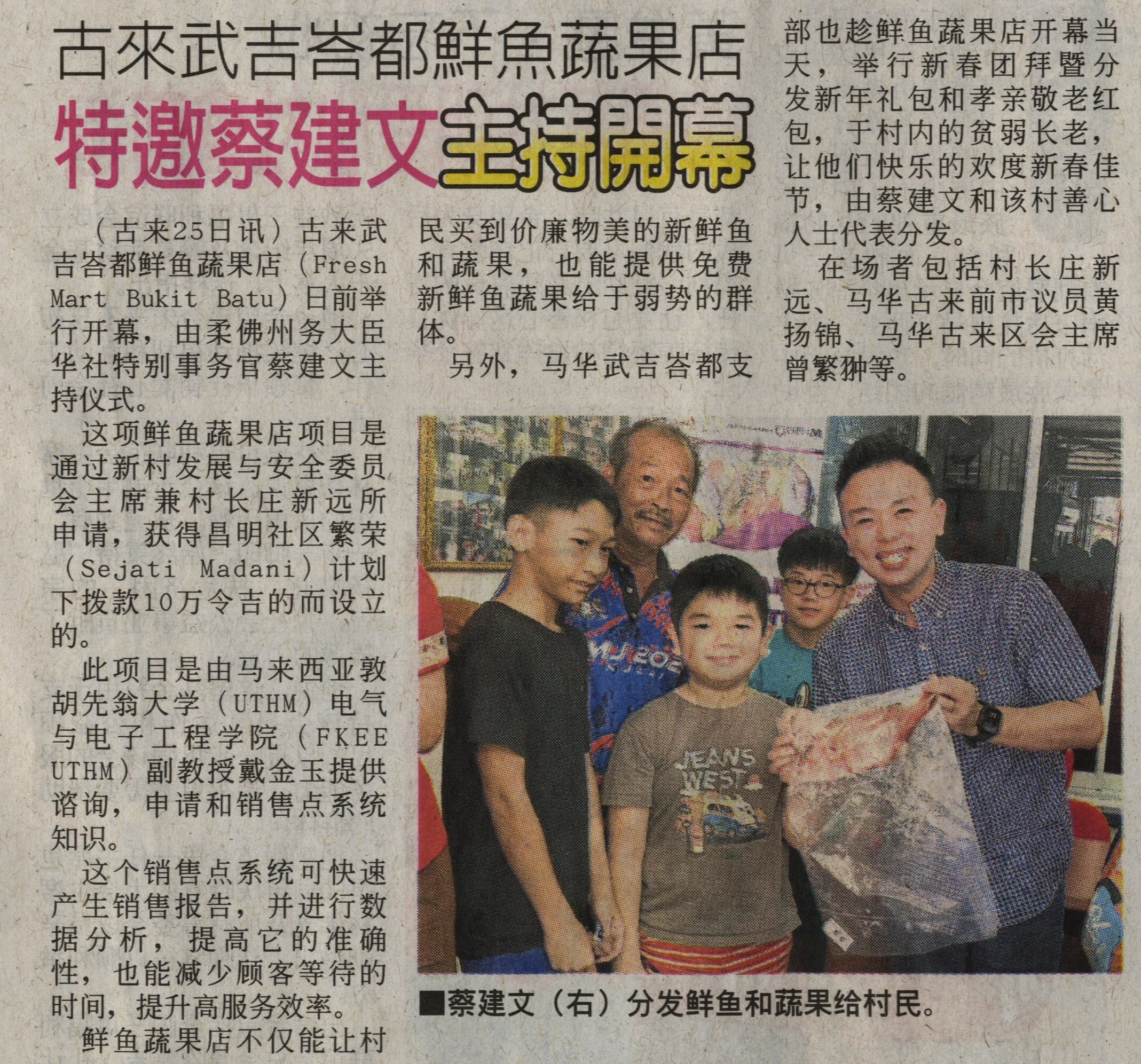 7. China Press (Johor) (page: C3): Kulai fish and vegetable shop invites Chua for opening