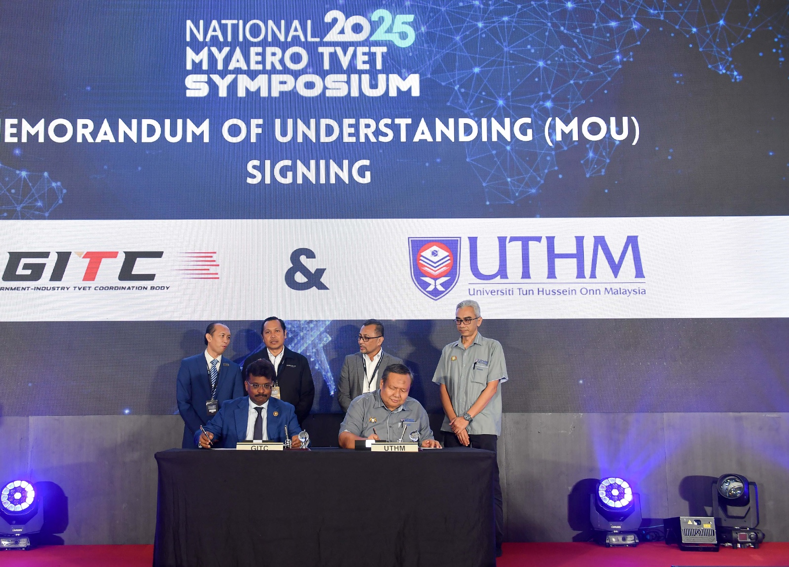 KUALA LUMPUR – Universiti Tun Hussein Onn Malaysia (UTHM) dan Government-Industry TVET Coordination Body (GITC) telah menandatangani Memorandum Persefahaman (MoU) pada 13 Februari 2025 di World Trade Centre Kuala Lumpur bagi menjalin kerjasama strategik dalam bidang Pendidikan dan Latihan Teknikal dan Vokasional (TVET).