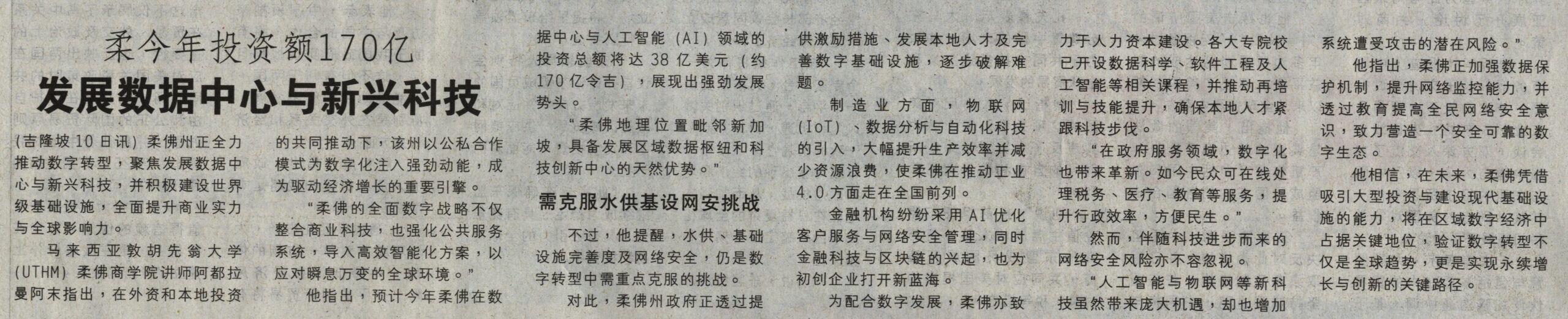 8. Nanyang Siang Pau (page:A4): Johor to invest RM17 billion this year to develop data centre and emerging technology. The statement by Prof. Dr. Abd. Rahman Ahmad, Dean Johor Business School (JBS), UTHM