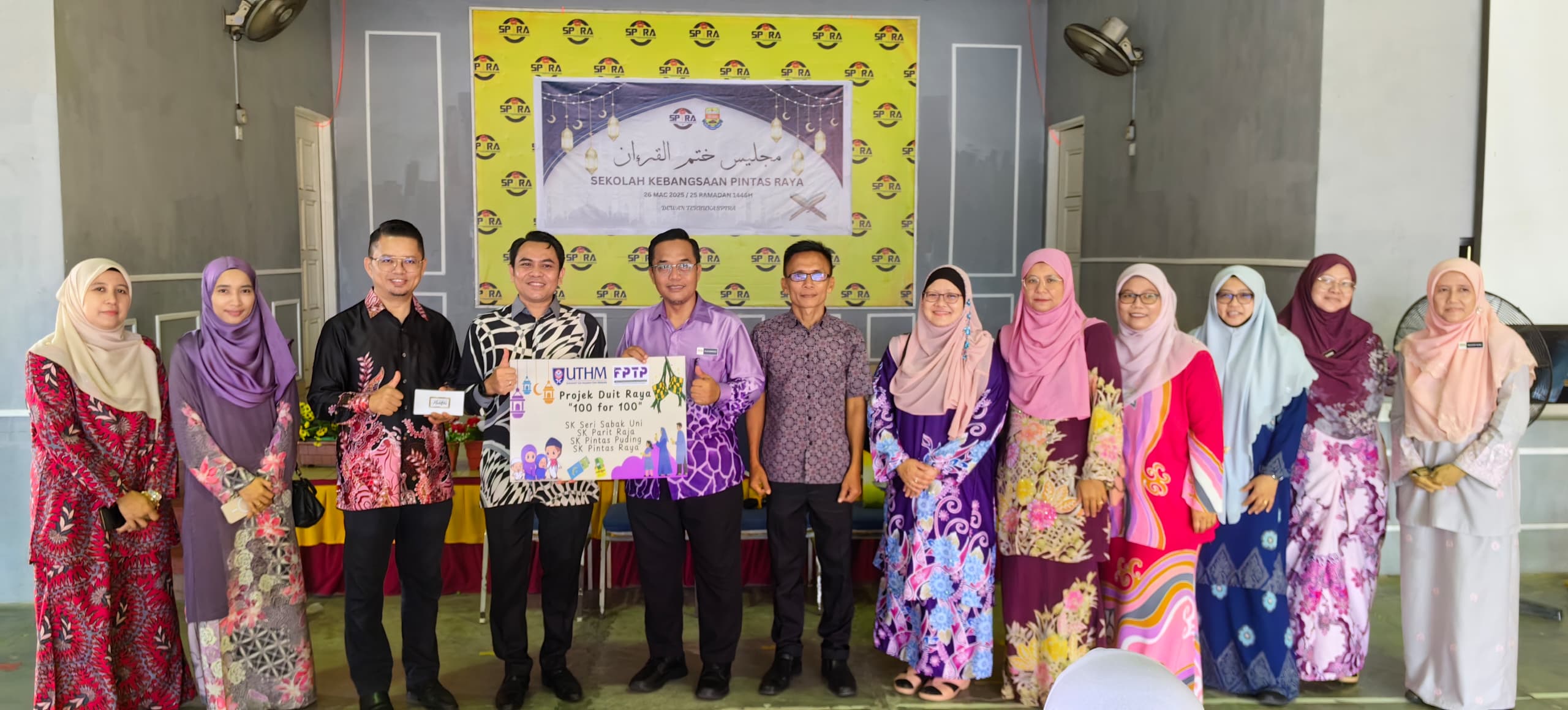 BATU PAHAT – Fakulti Pengurusan Teknologi dan Perniagaan (FPTP), Universiti Tun Hussein Onn Malaysia (UTHM) telah melaksanakan ‘Projek 100 for 100’ pada akhir Mac lalu bagi membantu 100 murid asnaf di empat sekolah rendah sekitar Parit Raja, Batu Pahat membuat persiapan menyambut Aidilfitri.