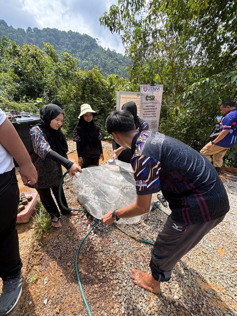 BATU PAHAT – Universiti Tun Hussein Onn Malaysia (UTHM) dan Ranhill SAJ Sdn. Bhd. bekerjasama membantu komuniti Orang Asli Leboh memulihara sumber air bawah tanah mereka daripada ancaman pencemaran dalam satu program khidmat masyarakat yang diadakan 26 Jun 2025 lalu.