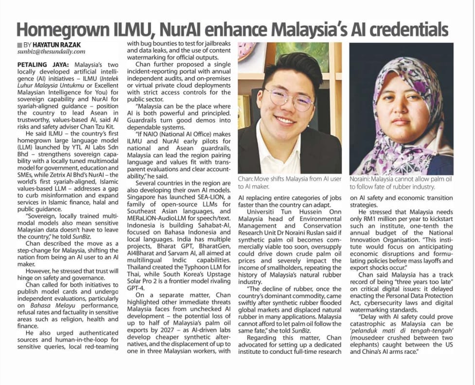 8. The Sun (page: 13): Homegrown ILMU, NurAI enhance Malaysia’s AI credentials. The Statement by Dr. Noraini Ruslan, Faculty of Applied Sciences and Technology (FAST), UTHM
