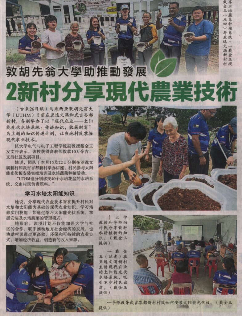 6. Sin Chew Daily (Johor) (page: 5): UTHM Supports Development: Two Villages Benefit from Modern Agricultural Technology Sharing