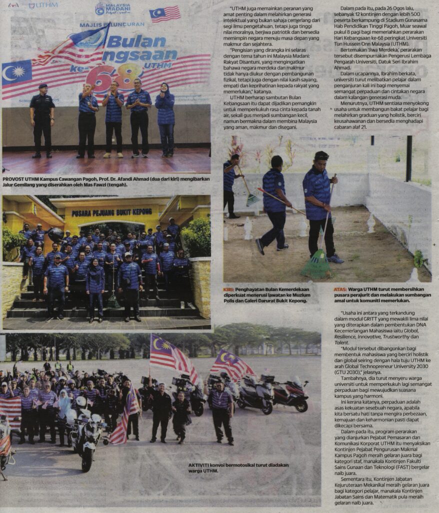 4. Bernama (bernama.com): Perpaduan Teras Kemerdekaan, Menyemai Semangat Hari Malaysia oleh Prof. Madya Ir. Ts. Dr. Saifulnizan Jamian, Fakulti Kejuruteraan Mekanikal dan Pembuatan (FKMP) dan Inv. Mahmod Abd Hakim Mohamad, Pusat Pengajian Diploma (PPD), UTHM