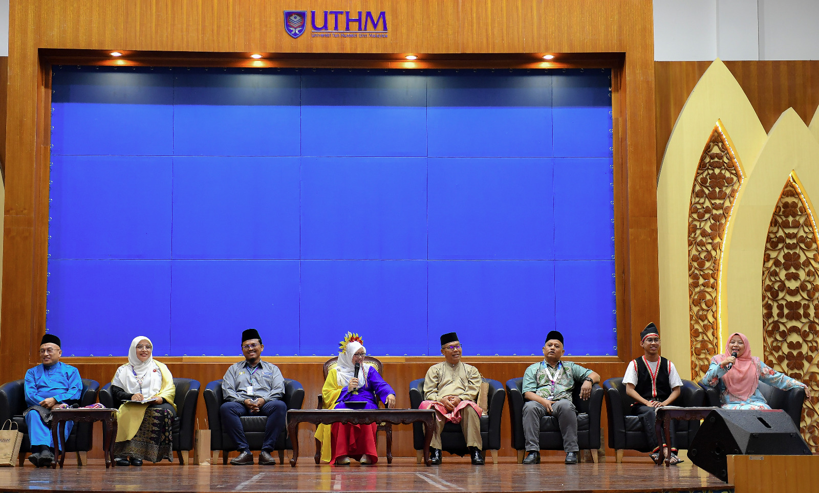Seramai enam ahli panel terdiri daripada staf universiti yang mewakili negeri Kelantan, Kedah, Sabah, Johor dan Jawa Johor berkongsi dialek daerah masing-masing, sekali gus mencuri perhatian penonton yang hadir.