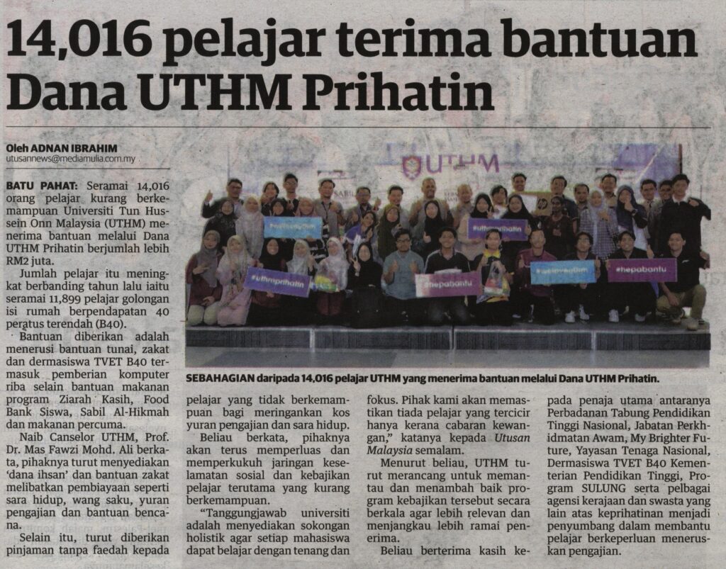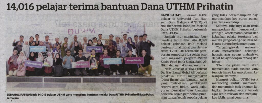 2. Utusan (utusan.com.my), 22 September 2025: 14,016 pelajar terima bantuan Dana UTHM Prihatin