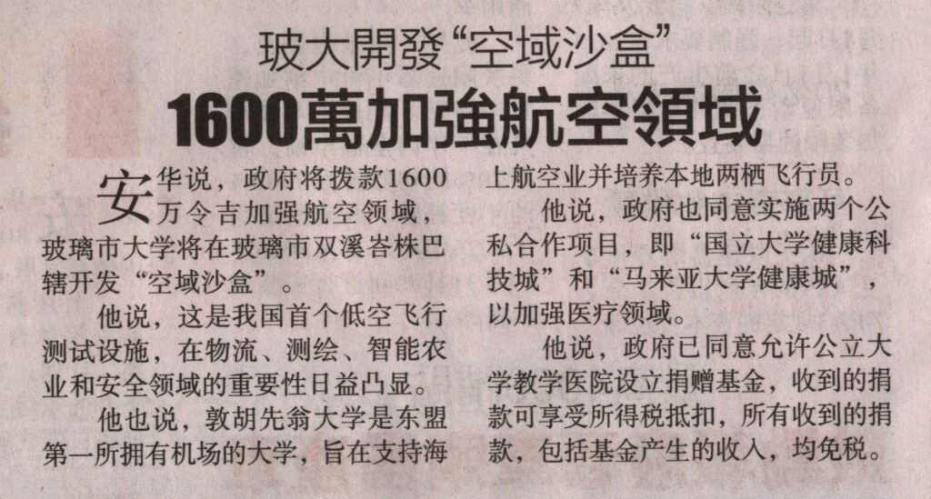 1. Liputan TV Astro Awani (Awani Niaga), 10 Oktober 2025: UTHM Universiti Pertama Asia Tenggara dengan lapangan terbang akan menyokong sektor penerbangan maritim