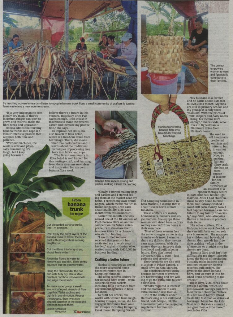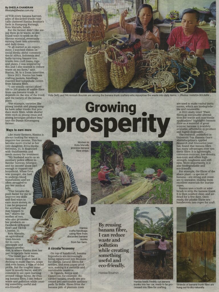 A 2023 study titled “Plant fibres as sustainable alternatives for textile and non-textile applications” highlights banana fibre as a material of great interest because it is widely available, affordable to produce and highly disposable. The research, published in Universiti Tun Hussein Onn’s Multidisciplinary Applied Research And Innovation journal, found that banana fibre has many advantages over synthetic fibre: It is lightweight, corrosion-resistant, low-density, non-toxic and offers high strength, toughness and stiffness. More importantly, it is also biodegradable and eco-friendly, For example, the fibres of the abaca plant – a species of banana – are strong and resistant to seawater, making them excellent materials for marine ropes.