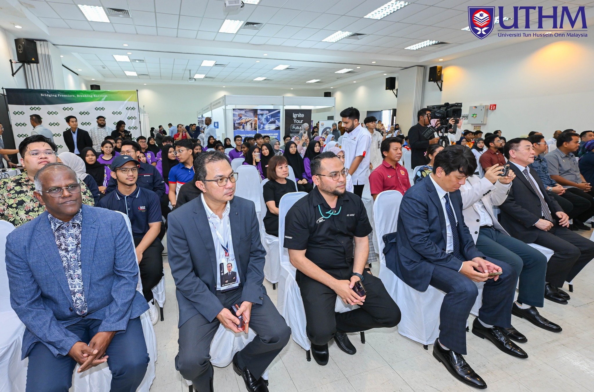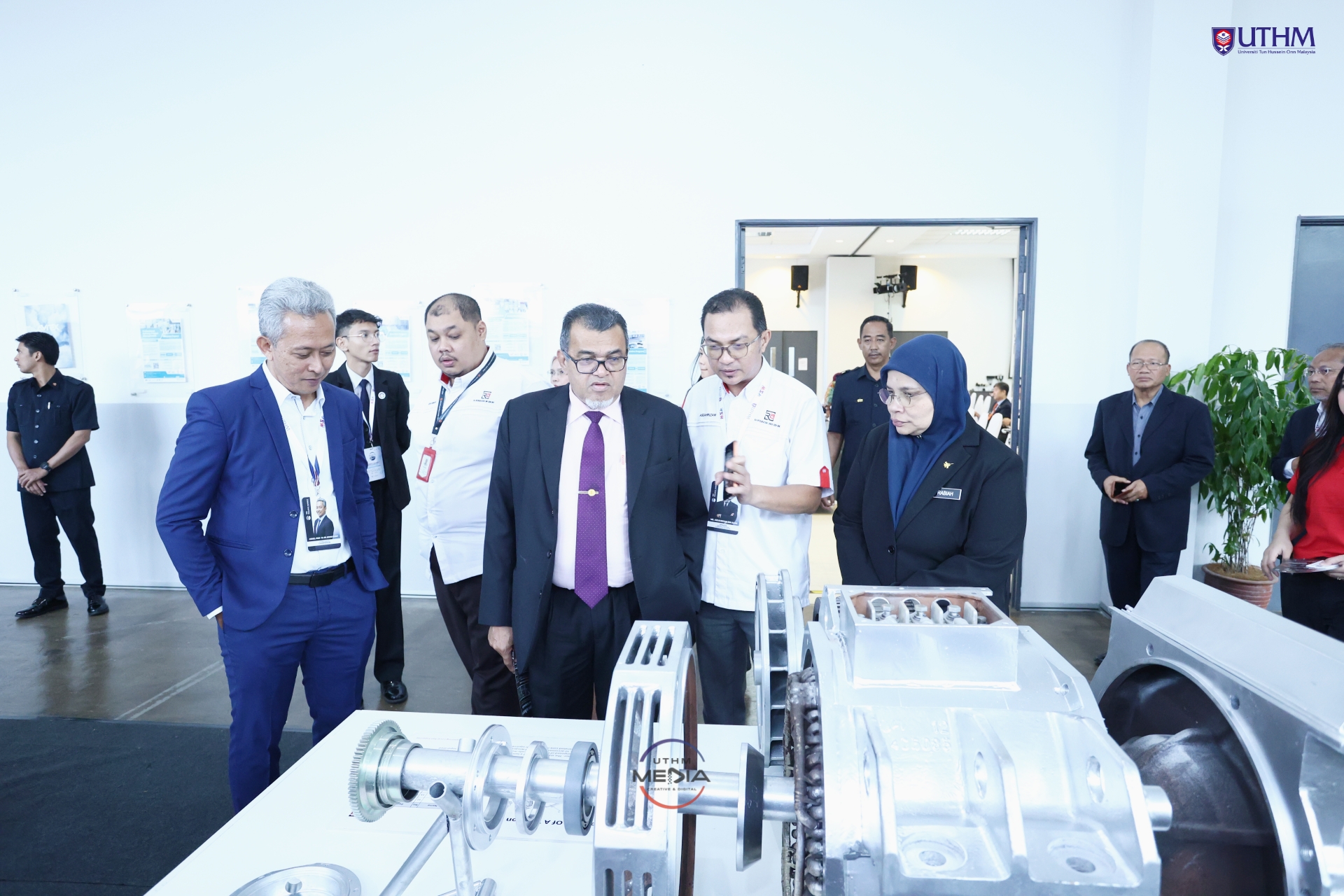 Hadir sama, Pengerusi Lembaga Pengarah Universiti, Dato’ Sri Ibrahim Ahmad; Timbalan Naib Canselor ( Penyelidikan dan Inovasi), Profesor Ts. Dr. Rabiah Ahmad FASc dan Pendaftar / Ketua Pegawai Operasi UTHM, Naim Maslan.