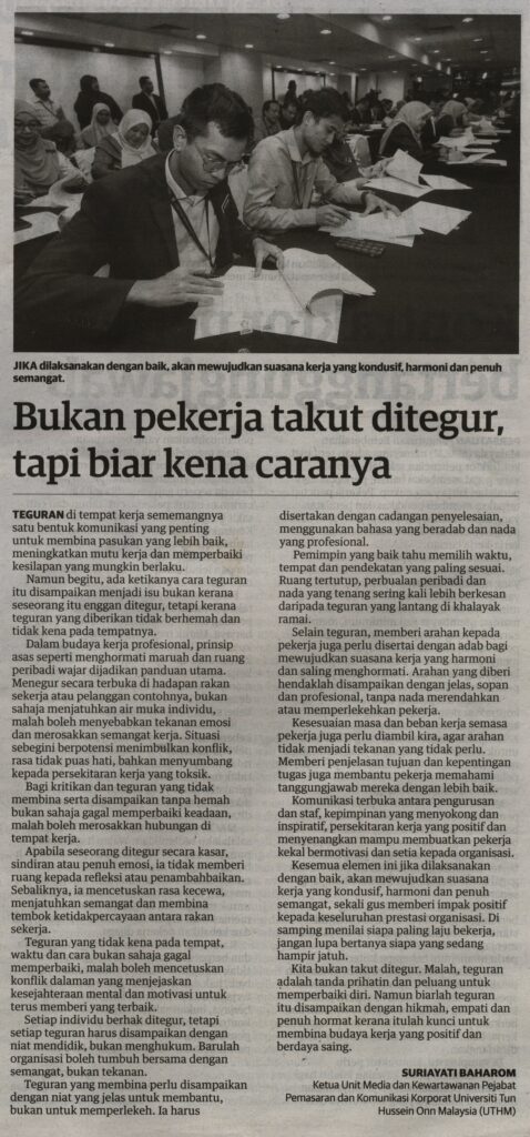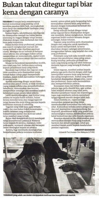 3. Utusan Malaysia (muka surat: 26), 28 November 2025: Bukan pekerja takut ditegur, tapi biar kena caranya