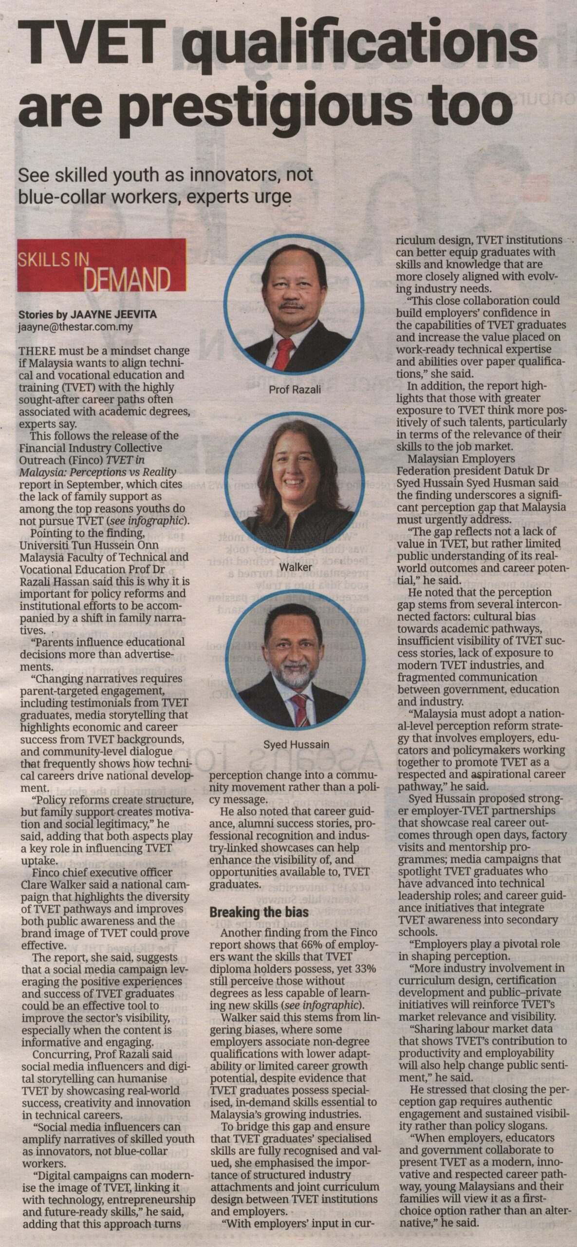2. Sunday Star (page: 1,4 and 5): TVET qualifications are prestigious too. The statement by Prof. Ts. Dr. Razali Hassan, Faculty of Technical and Vocational Education (FPTV), UTHM