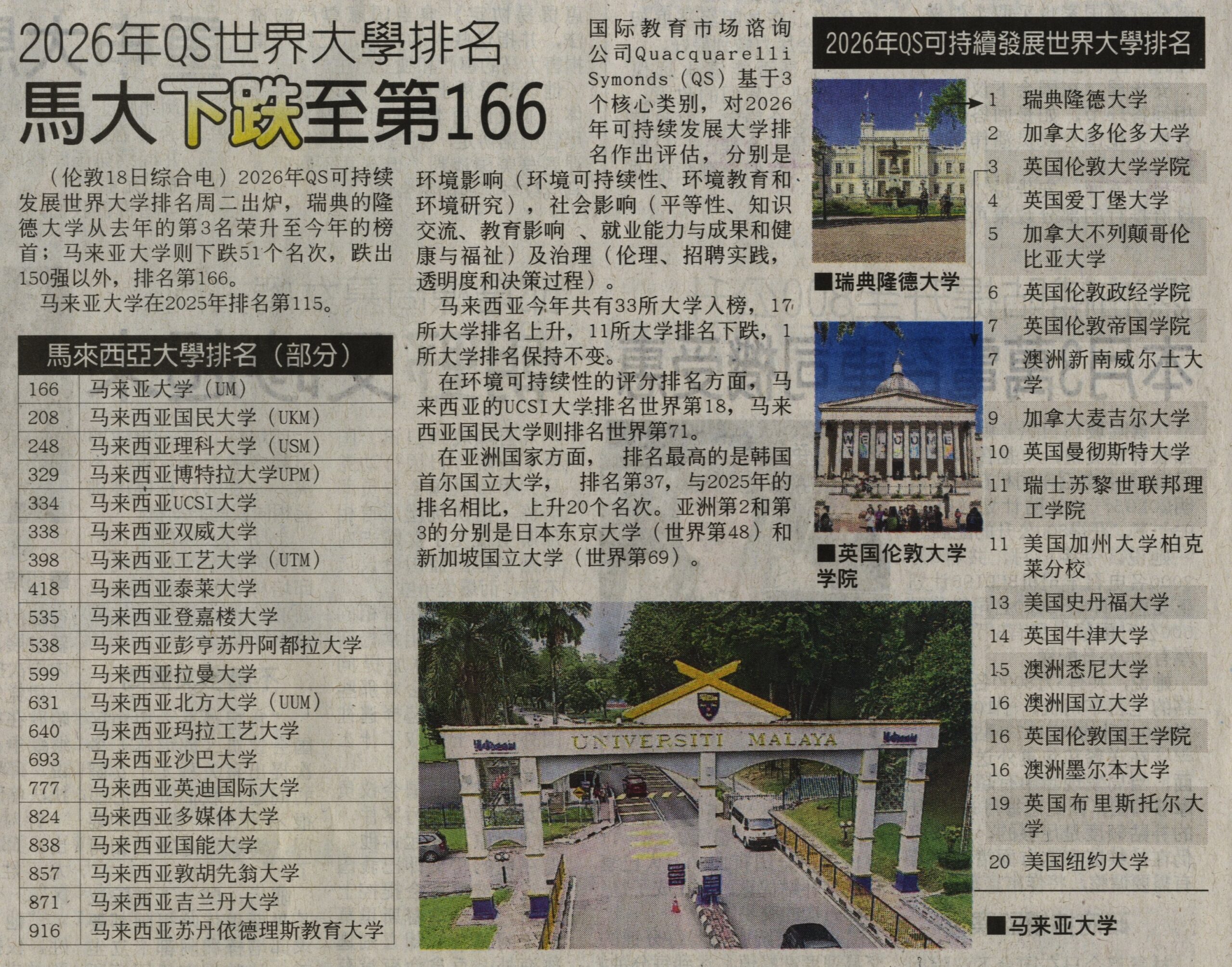 8. China Press (chinapress.com.my): QS World University Rankings: Sustainability 2026