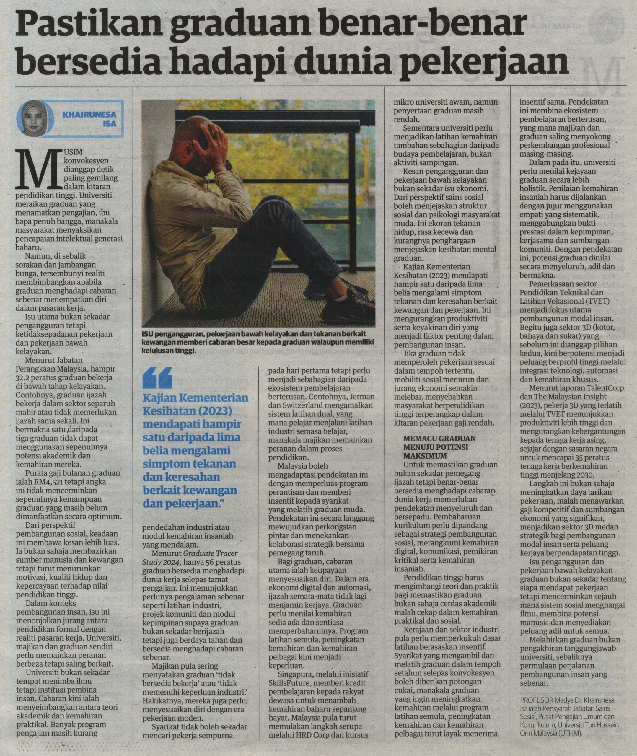 2. Utusan (utusan.com.my): Pastikan graduan benar-benar bersedia hadapi dunia pekerjaan oleh Prof. Madya Dr. Khairunesa Isa, Pusat Pengajian Umum dan Kokurikulum (PPUK), UTHM