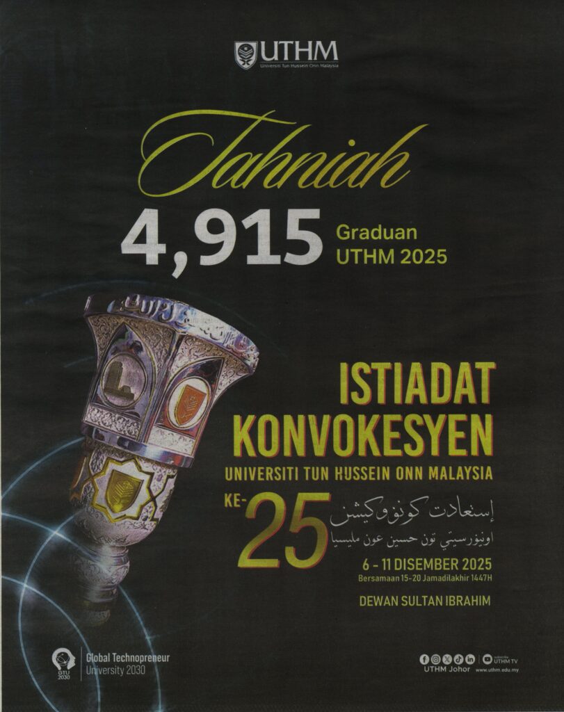 1. Berita Harian (muka surat: 9): Tahniah 4, 915 Graduan UTHM 2025 Istiadat Konvokesyen Universiti Tun Hussein Onn Malaysia Ke-25