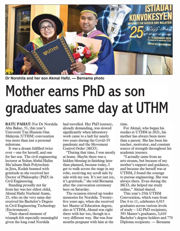 12. Borneo Post (KK) (page: 2): Mother earns PhD as son graduates same day at UTHM