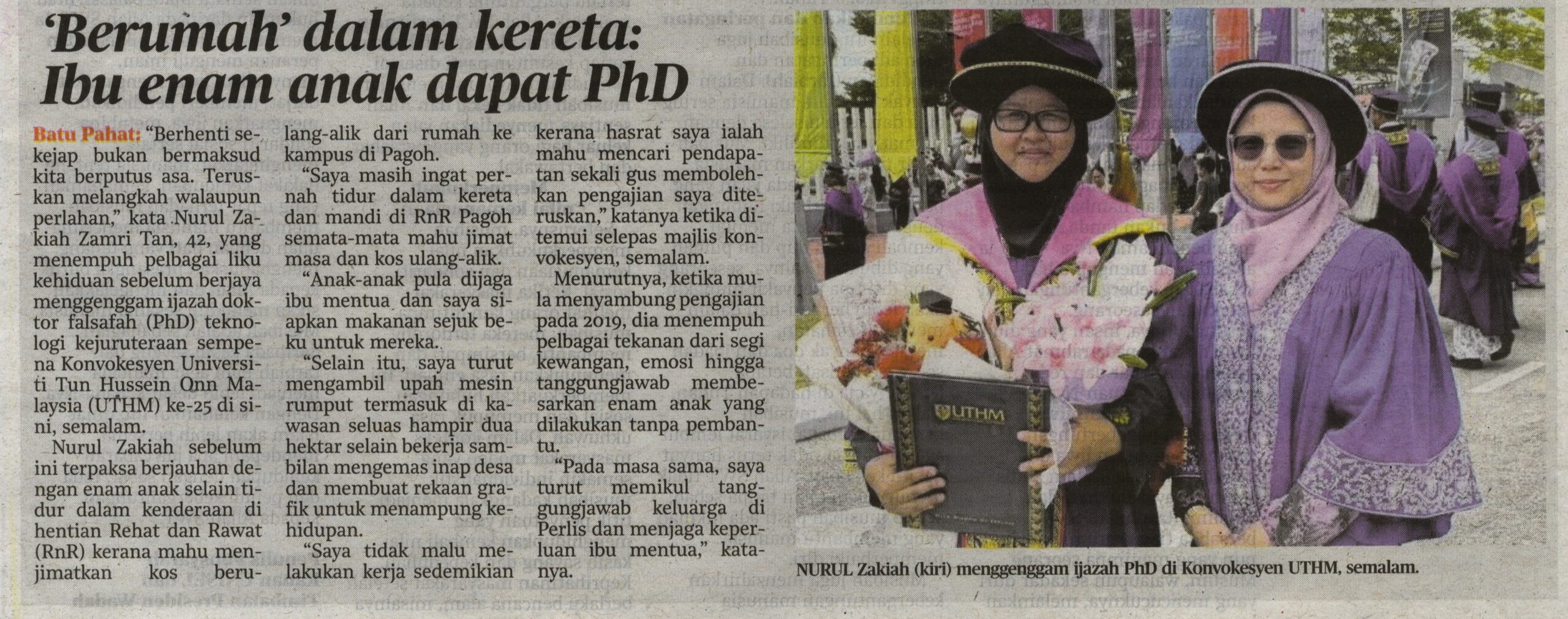 2. Harian Metro (muka surat: 16): Berumah dalam kereta: Ibu enam anak dapat PhD