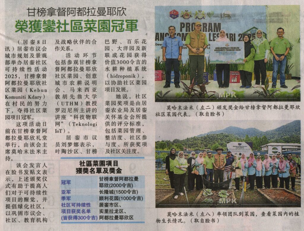 9. Sin Chew Daily (Johor) (page: 9): 榮獲鑾社區菜園冠軍