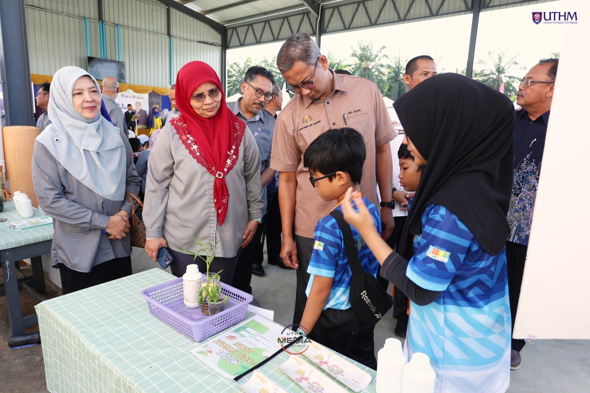 Hadir sama ke majlis tersebut, Prof. Ts. Dr. Rabiah Ahmad, Timbalan Naib Canselor (Penyelidikan dan Inovasi), UTHM serta Md Ezam Taslim, wakil rasmi Ahli Parlimen Sri Gading.