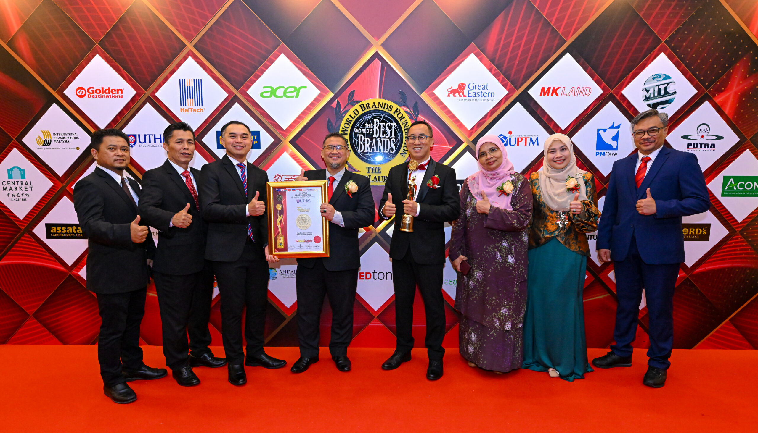 Anugerah berkenaan telah disampaikan oleh World President of The BrandLaureate, Profesor Emeritus Dr. KK Johan kepada Naib Canselor UTHM, Profesor Ts. Dr. Mas Fawzi Mohd Ali.