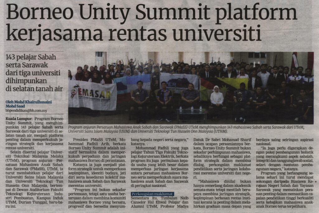 3. Berita Harian (muka surat: 21); Borneo Unity Summit platform kerjasama rentas universiti