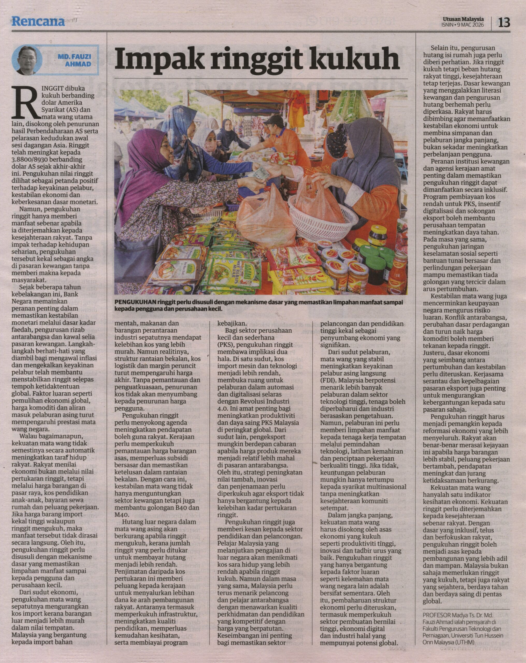 2. Utusan (utusan.com.my): Impak ringgit kukuh oleh Prof. Madya Ts. Dr. Md Fauzi Ahmad, Fakulti Pengurusan Teknologi dan Perniagaan (FPTP), UTHM