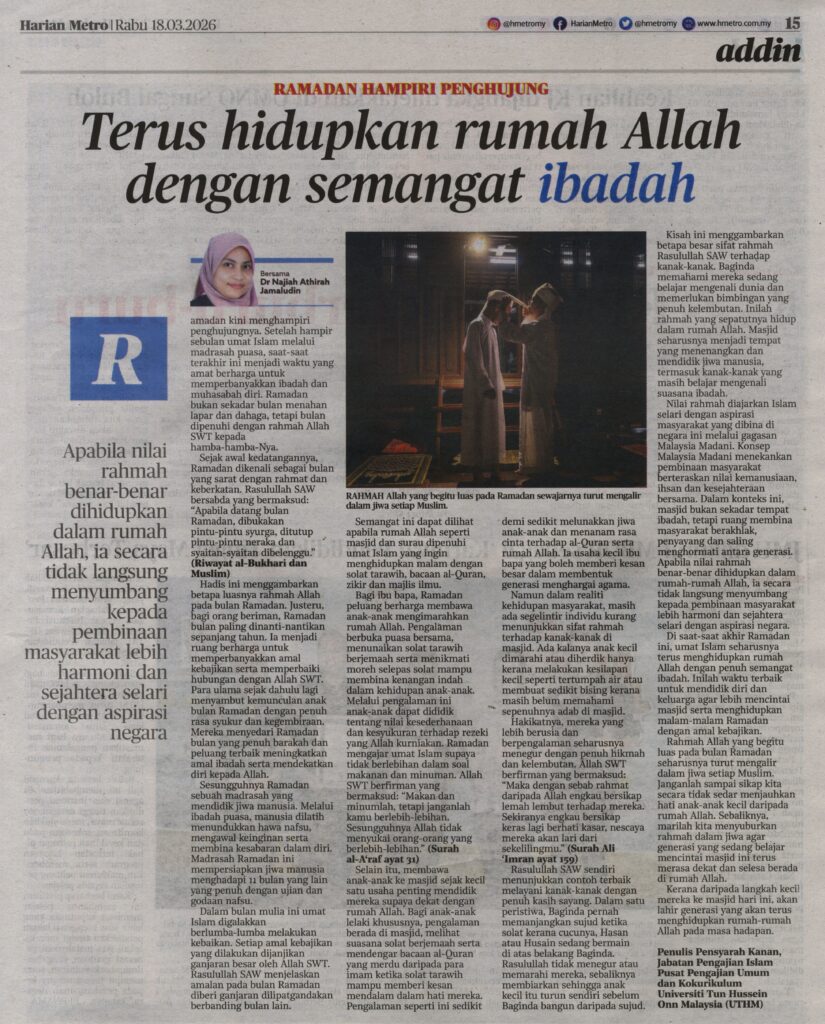 1. Harian Metro (muka surat: 15), 18 Mac 2026: Terus hidupkan rumah Allah dengan semangat ibadah